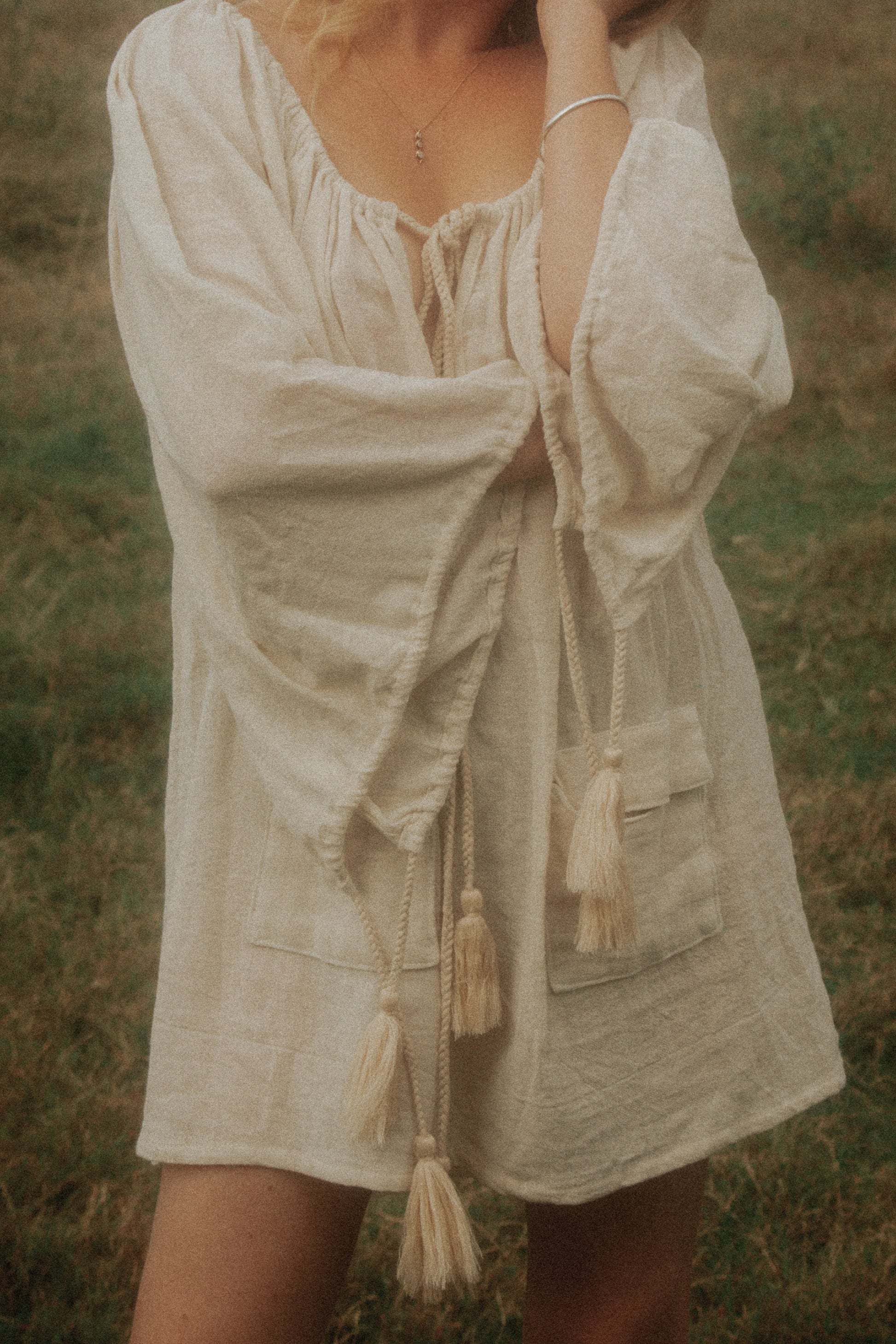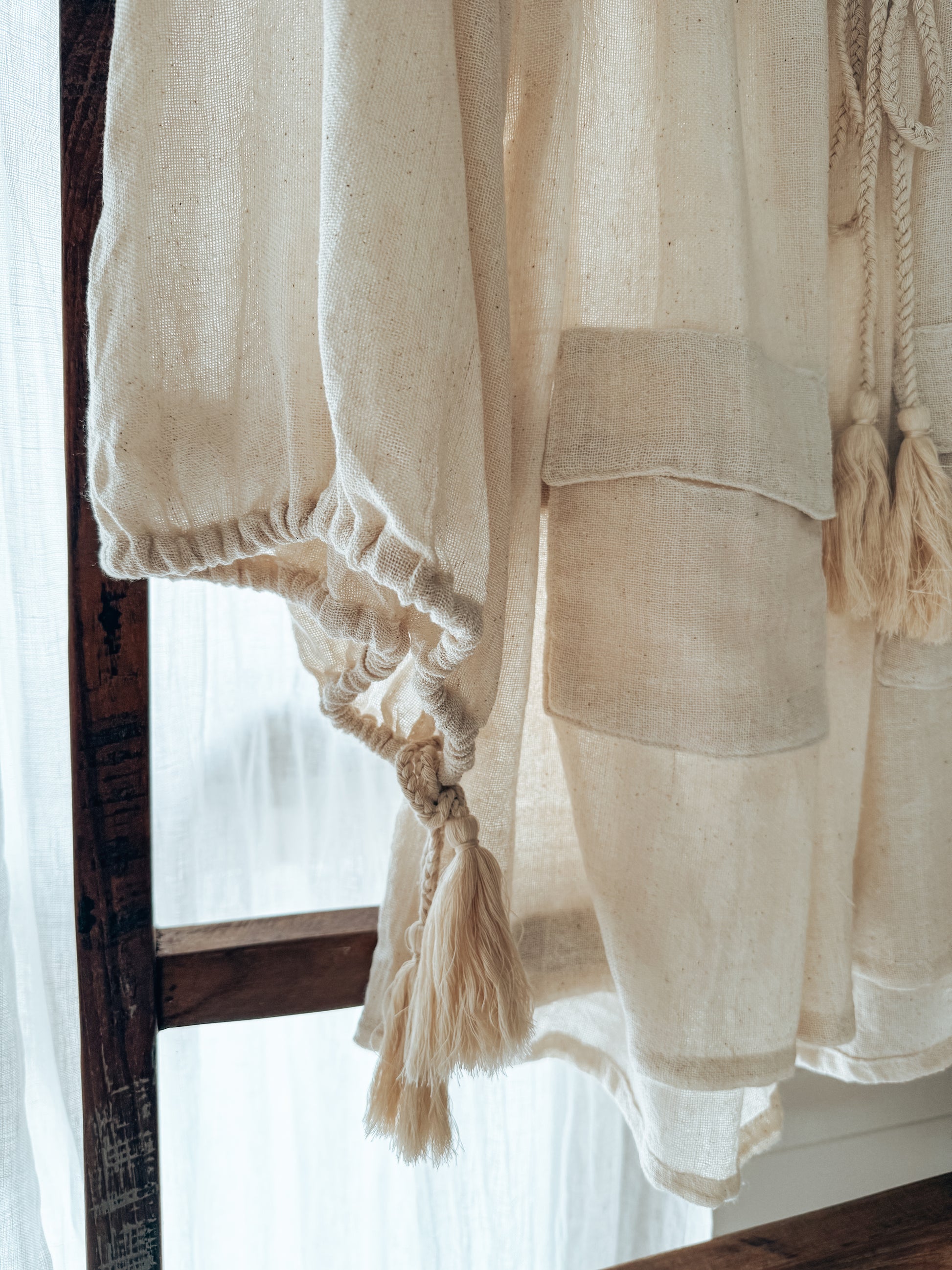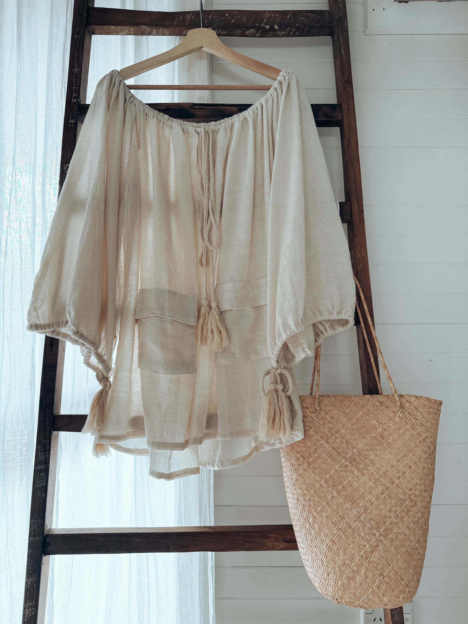 ~ ALICE Dress/Top — a dreamy piece crafted from beautiful Ramie cotton, soft and breathable. With its elegant wide sleeves, adjustable neckline, and charming front pockets, it brings a perfect balance of comfort and style. Mini in length and versatile in design, wear it as a dress or layer it as a top. Ethically made in Bali, thoughtfully created to cherish every day ~