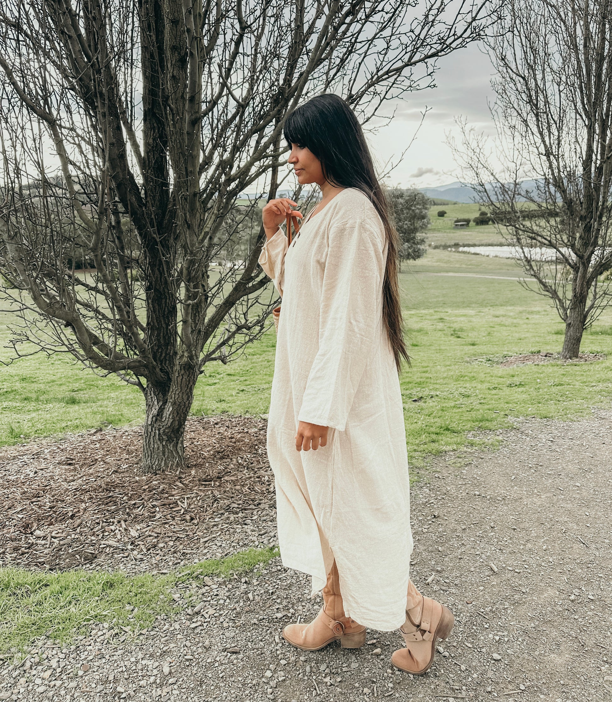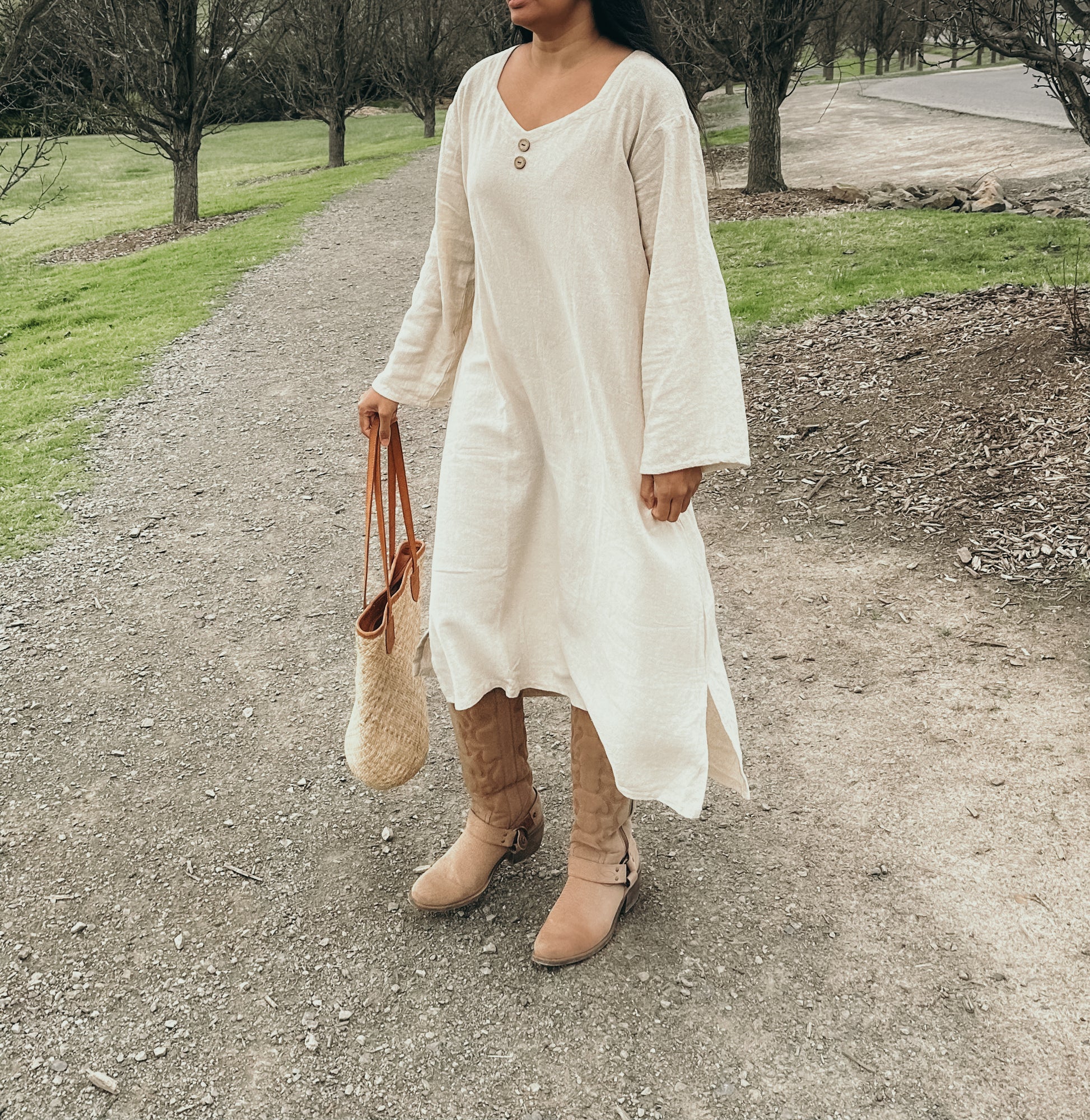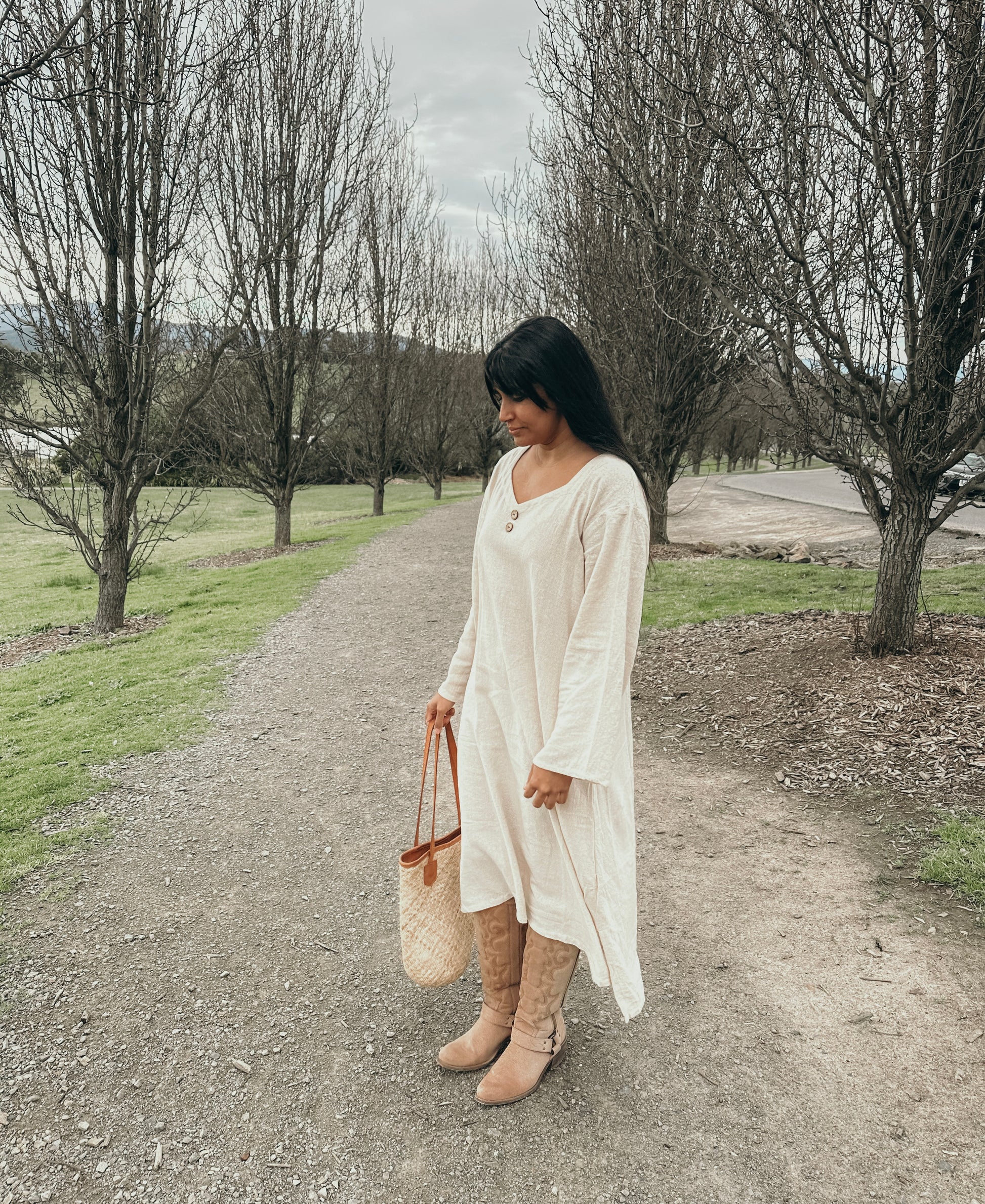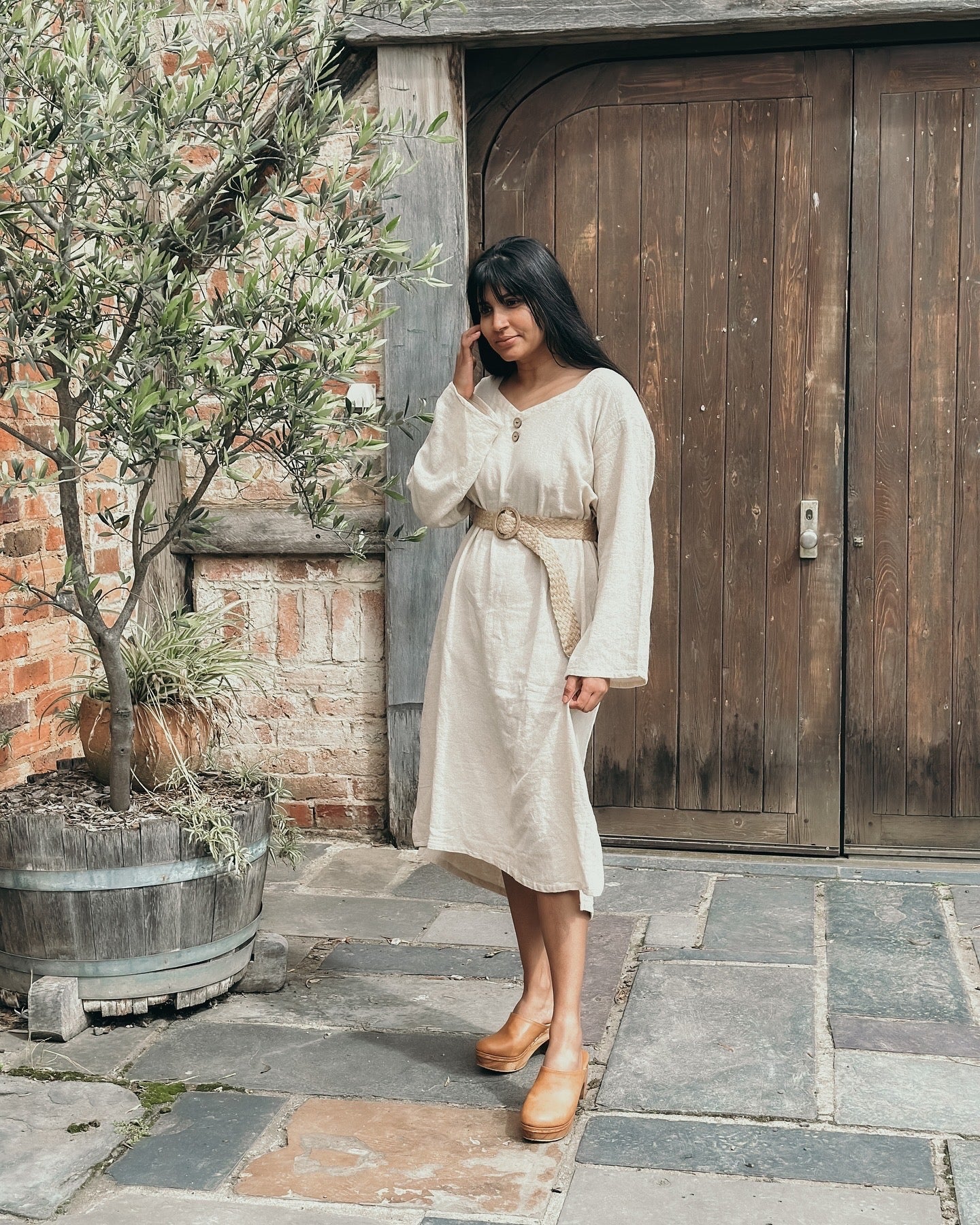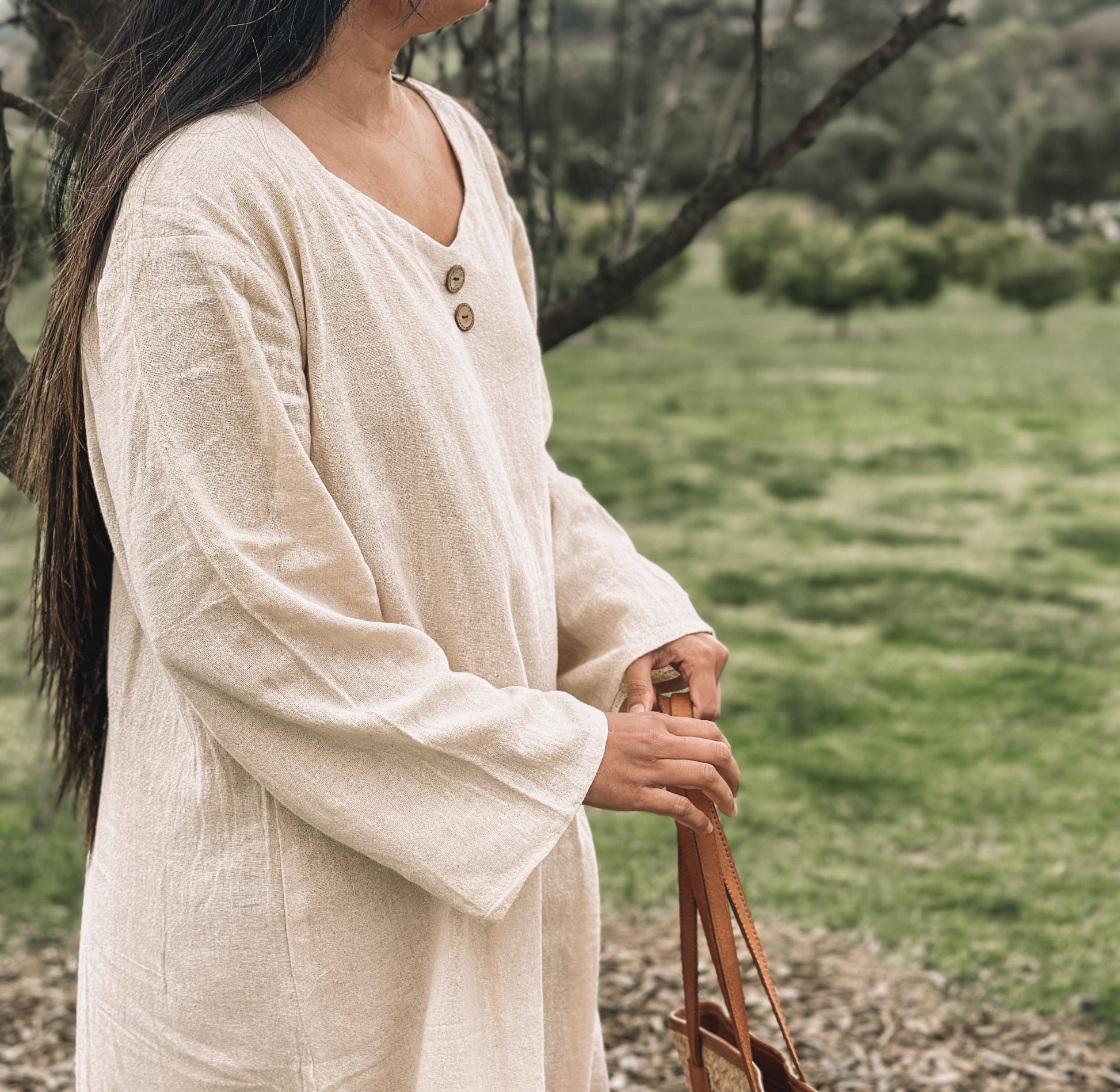 This GORGEOUS dress with its raw textured fabric looks & feels sumptuous on! Generously oversized for an effortless look or can be cinched in with a belt to show off your waistline. I'd returned here looking for pottery spoons (I'd broken one I'd purchased last year) but discovered Nikki's new clothing line and came away with this amazing dress! My parcel arrived way ahead of schedule. The presentation was exceptional, and to my surprise I discovered Nikki had thoughtfully gifted me a replacement spoon :) Thanks again so much Nikki :)