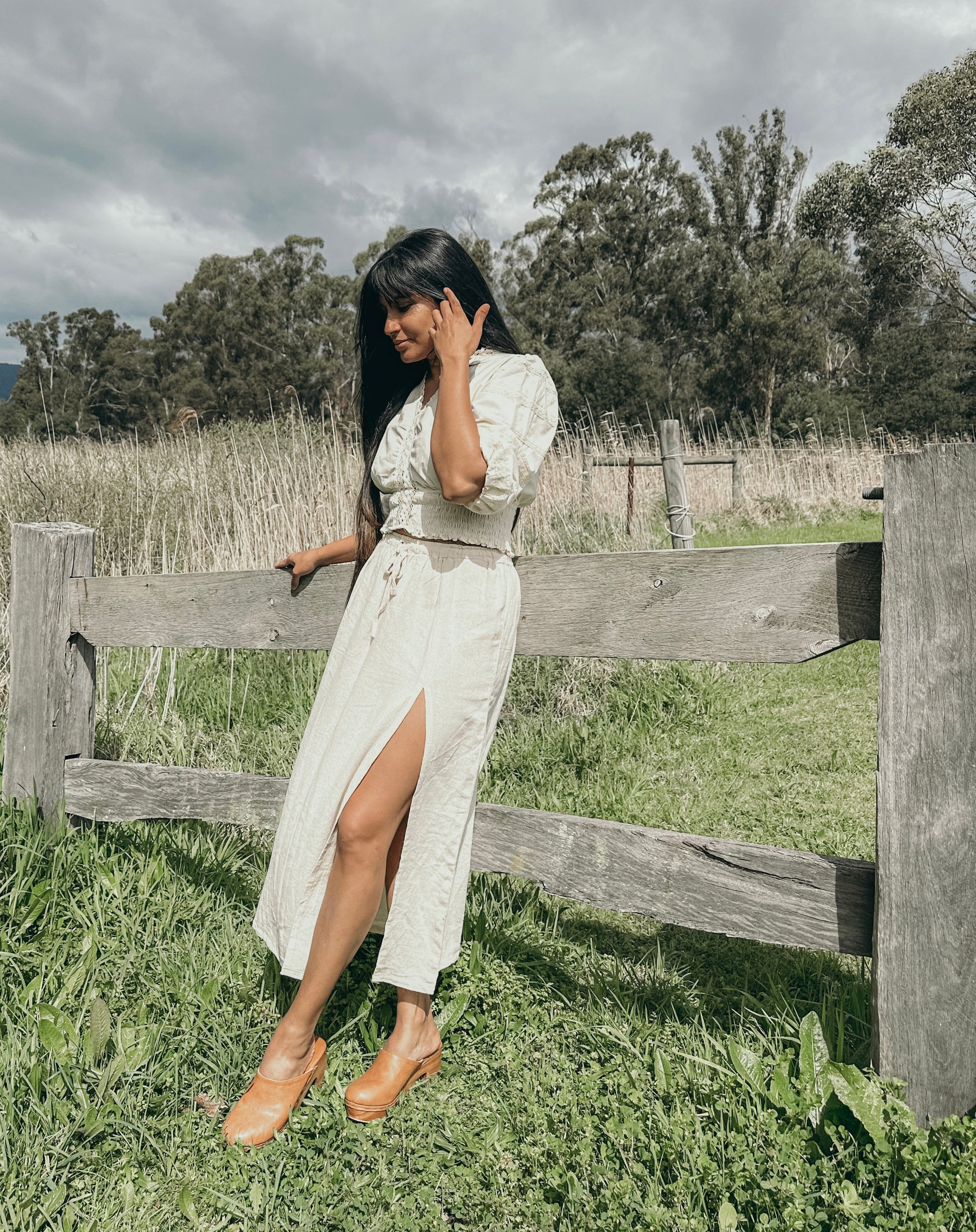 Some shrinkage is expected after the first wash due to the fabric being a gauze. We’ve sized this piece to accommodate that.