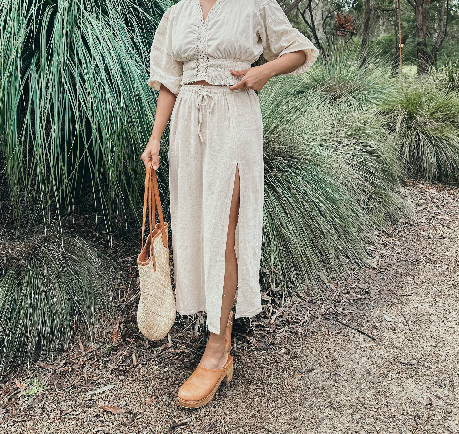 A loose-cut skirt made from Indian hemp and organic cotton in a textured gauze fabric.