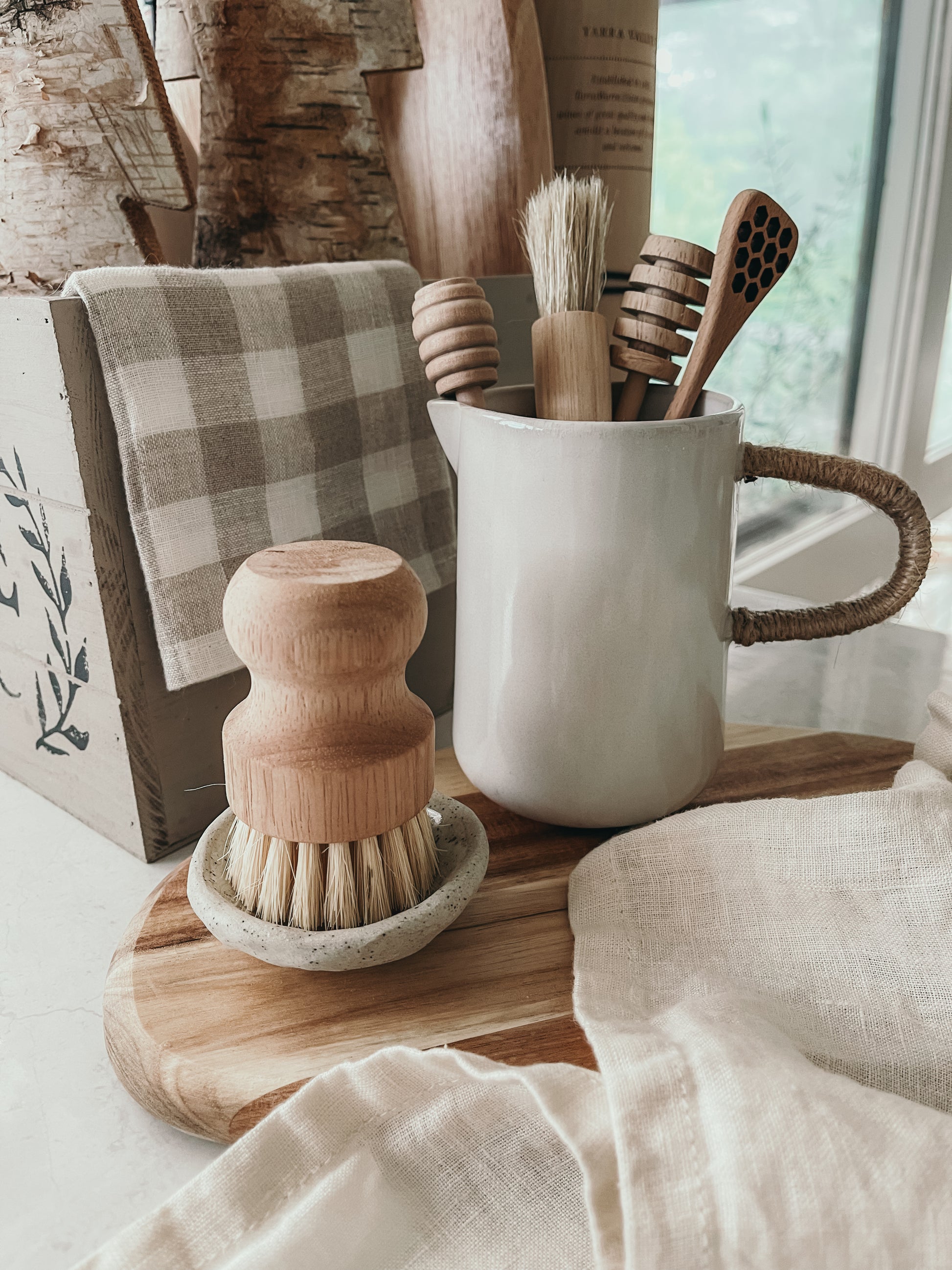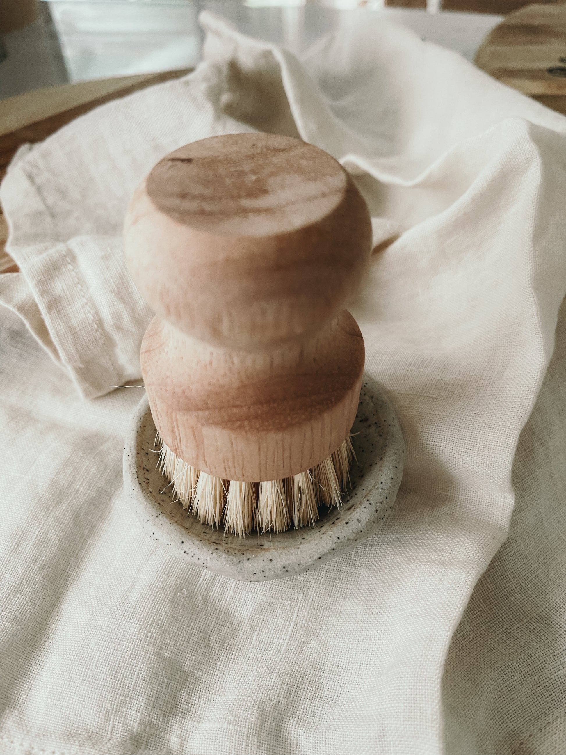 Made from clay, this dish wash brush holder adds a touch of charm to your kitchen. Its simple yet elegant design provides a beautiful and practical way to keep your brush neatly stored.