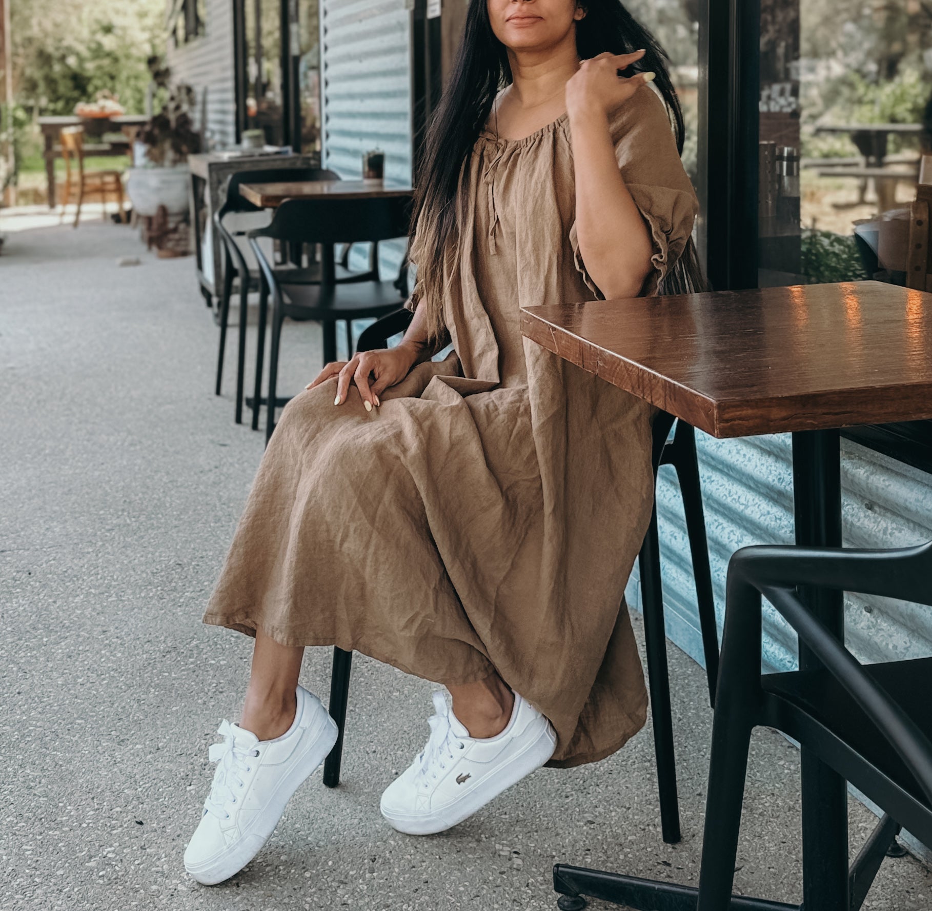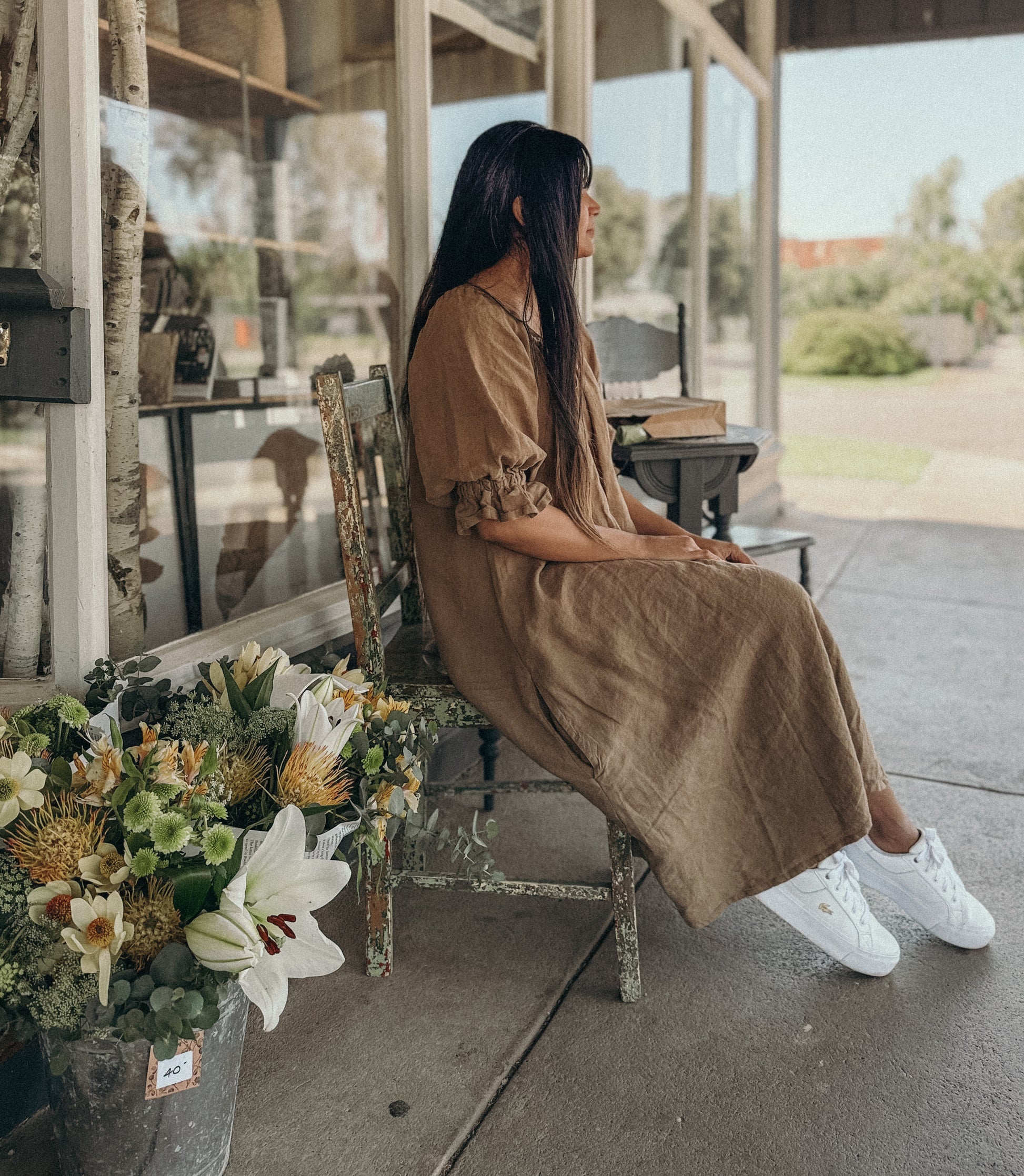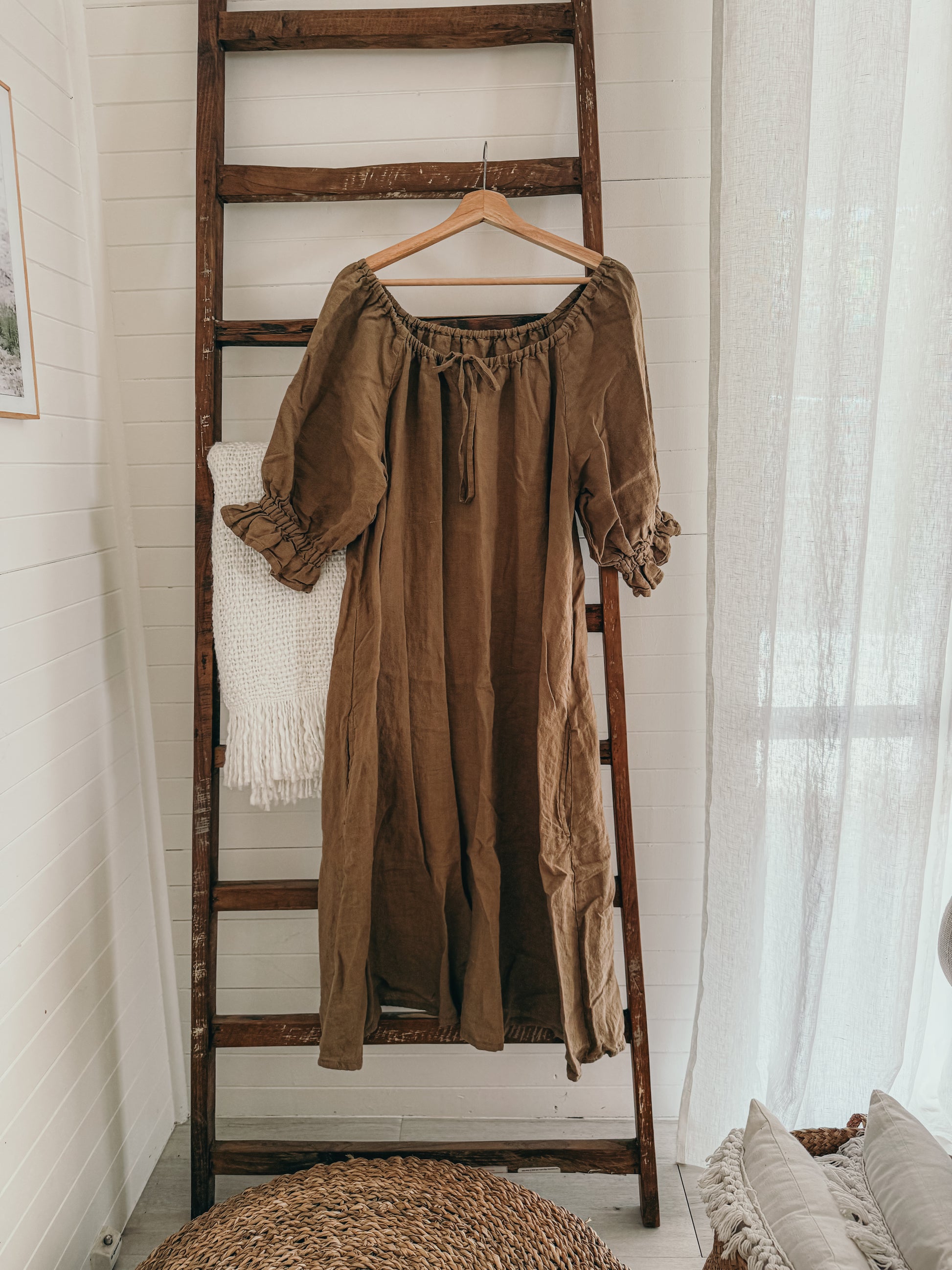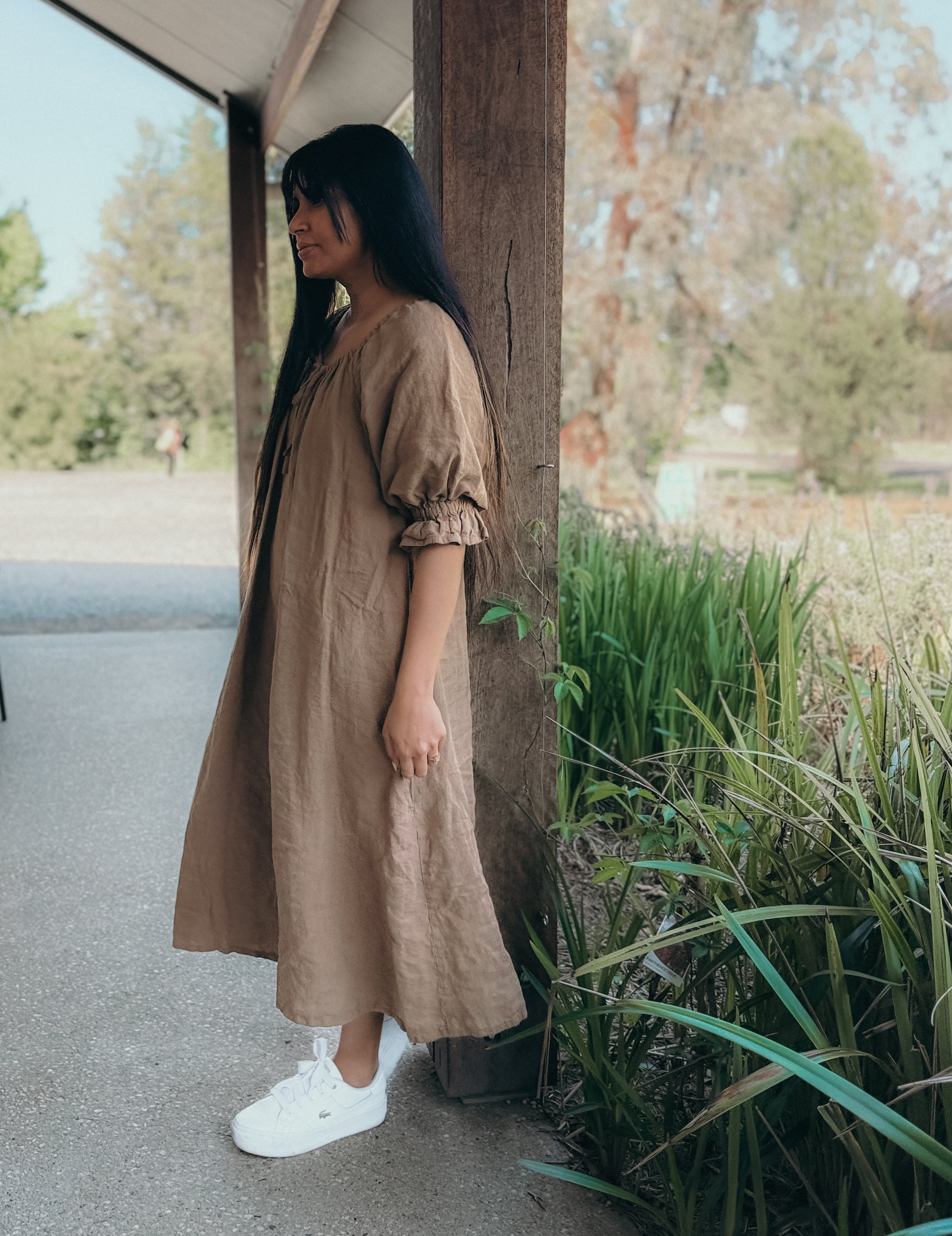 Ophelia Linen Midi Dress ~ NUTBROWN